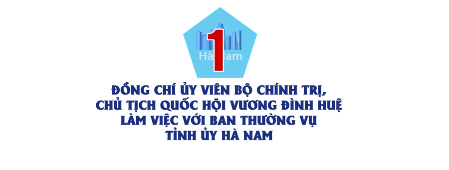 Ngày 14/5/2023, đồng chí Vương Đình Huệ - Ủy viên Bộ Chính trị, Chủ tịch Quốc hội và Đoàn công tác Trung ương đã có buổi làm việc với Ban Thường vụ Tỉnh ủy Hà Nam. Thay mặt lãnh đạo Đảng, Nhà nước, đồng chí Chủ tịch Quốc hội biểu dương những kết quả Đảng bộ, chính quyền, quân và dân tỉnh Hà Nam đạt được trong thực hiện Nghị quyết Đại hội XIII của Đảng và Nghị quyết Đại hội Đảng bộ tỉnh lần thứ XX, nhiệm kỳ 2020-2025. Đồng chí Chủ tịch Quốc hội đề nghị tỉnh đẩy mạnh thực hiện 03 khâu đột phá chiến lược, cơ cấu lại nền kinh tế gắn với đổi mới mô hình tăng trưởng; cải thiện đời sống vật chất và tinh thần cho Nhân dân; tiếp tục đổi mới và nâng cao chất lượng hoạt động Đoàn đại biểu Quốc hội tỉnh và Hội đồng nhân dân các cấp.