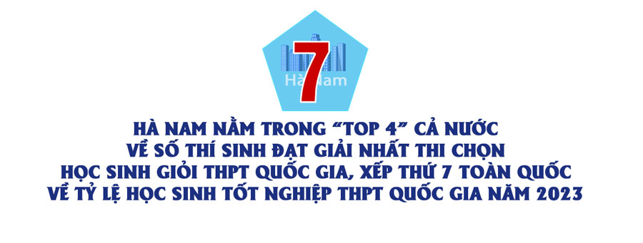 Kỳ thi chọn học sinh giỏi THPT quốc gia, toàn tỉnh có 46/74 học sinh dự thi đạt giải; trong đó có 6 giải Nhất, 6 giải Nhì, 15 giải Ba và 19 giải Khuyến khích. Hà Nam là tỉnh nằm trong “top 4” cả nước về số thí sinh đạt giải Nhất thi chọn học sinh giỏi quốc gia. Kỳ thi tốt nghiệp THPT năm 2023, điểm bình quân các môn của học sinh Hà Nam xếp thứ 7 toàn quốc, tỷ lệ học sinh tốt nghiệp đạt 99,94%.
