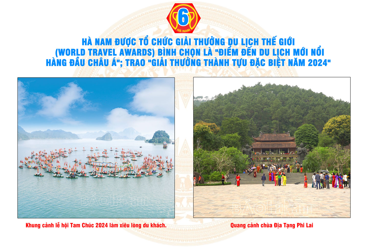 Năm 2024, Hà Nam được Tổ chức Giải thưởng du lịch thế giới (World Travel Awards) bình chọn là "Điểm đến du lịch mới nổi hàng đầu châu Á"; trao "Giải thưởng thành tựu đặc biệt năm 2024". Đây là vinh dự, thể hiện tiềm năng và sức hút của du lịch Hà Nam, là động lực quan trọng, tạo đà để du lịch Hà Nam tiếp tục bứt phá, đẩy mạnh quảng bá, xúc tiến đầu tư một cách toàn diện, hướng đến du lịch xanh, bền vững trong thời gian tới. Năm 2024, tổng số khách du lịch ước đạt 4,731 triệu lượt người (đạt 110 % so với kế hoạch năm và tăng 8,0% so với năm 2023), trong đó: khách quốc tế ước đạt 147,3 nghìn lượt, khách nội địa ước đạt 4,583.7 triệu lượt người. Tổng doanh thu từ du lịch ước đạt 3,657 tỷ đồng (đạt 110 % so với kế hoạch năm và tăng 8,1% so với năm 2023).
