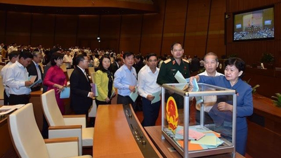 | Đại biểu Quốc hội tiến hành lấy phiếu tín nhiệm bằng bỏ phiếu kín. |