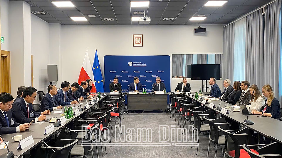 | Đoàn công tác tỉnh Nam Định làm việc với Bộ Kinh tế và Công nghệ Ba Lan. |