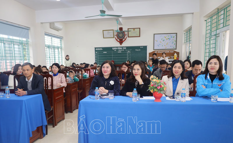 Các đại biểu dự chương trình trao tặng quà tại Trường TH Lê Hồ (Kim Bảng).
