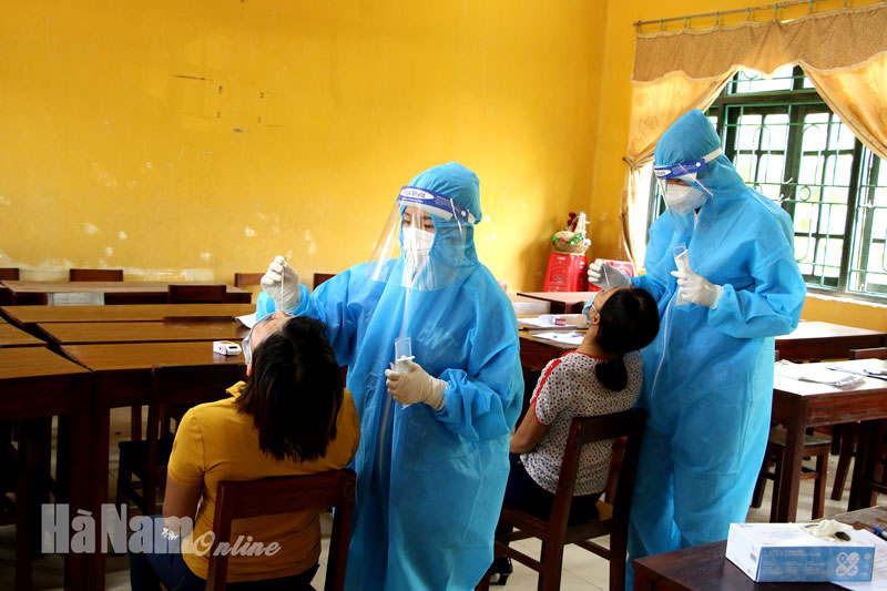 Nhân viên y tế của huyện Lý Nhân lấy mẫu xét nghiệm cho giáo viên trước ngày khai giảng năm học mới.