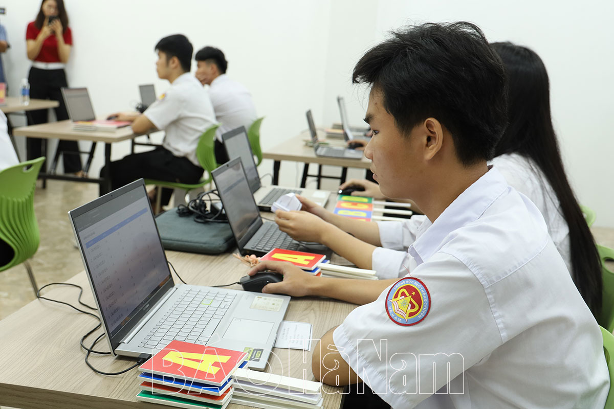 Các thí sinh tham dự phần thi trắc nghiệm và trả lời câu hỏi trên máy tính.