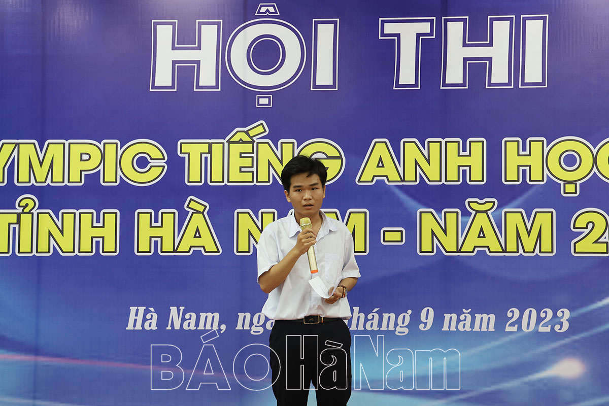 Sáng 28/9, Tỉnh đoàn Hà Nam phối hợp với Trung tâm Anh ngữ AMES Hà Nam tổ chức Hội thi Olympic Tiếng Anh học sinh tỉnh Hà Nam năm 2023. Tham dự hội thi có 11 thí sinh đến từ các huyện, thị xã, thành phố.