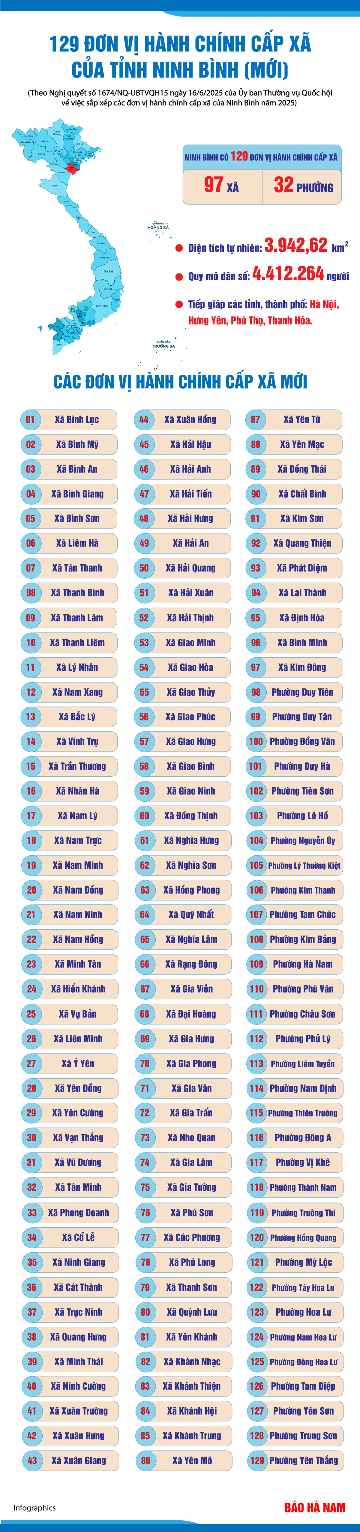 129 đơn vị hành chính cấp xã của tỉnh Ninh Bình (mới)