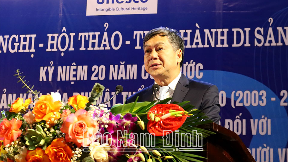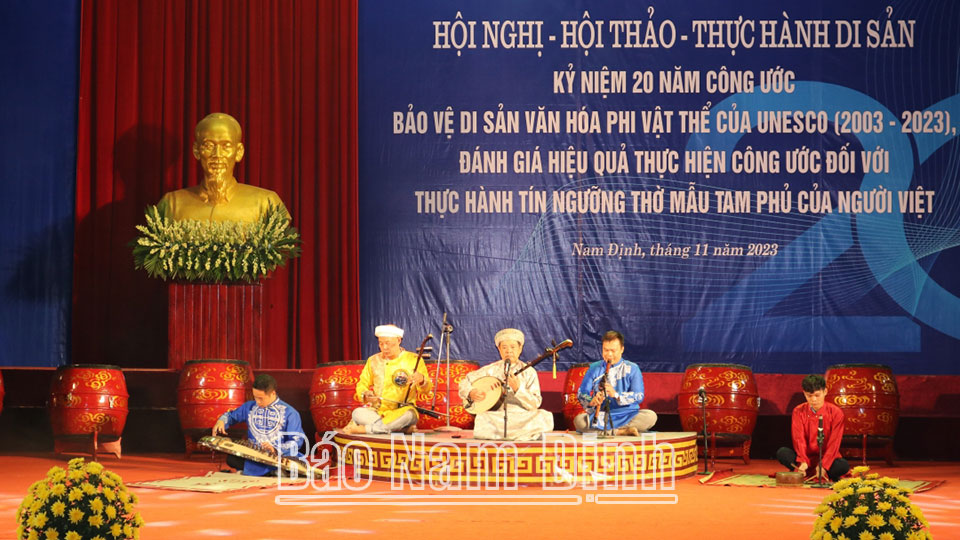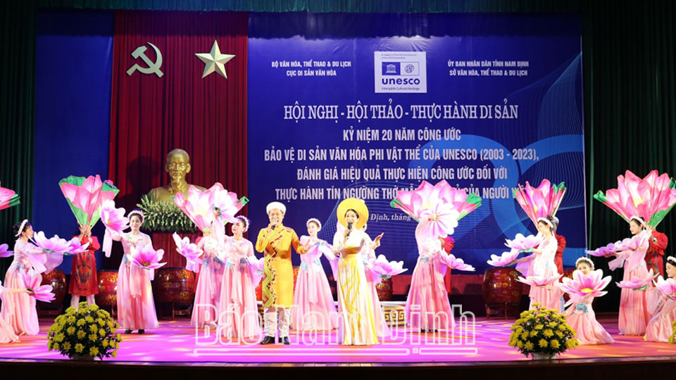 Ngày 29-11, tại Nhà Văn hoá 3-2 tỉnh (thành phố Nam Định), Sở Văn hóa, Thể thao và Du lịch (VH, TT và DL) phối hợp với Cục Di sản văn hoá (Bộ VH, TT và DL) tổ chức Hội nghị Thực hành di sản kỷ niệm 20 năm Công ước Bảo vệ di sản văn hoá phi vật thể của UNESCO (2003-2023); đánh giá hiệu quả thực hiện Công ước đối với thực hành tín ngưỡng thờ Mẫu Tam phủ của người Việt.
