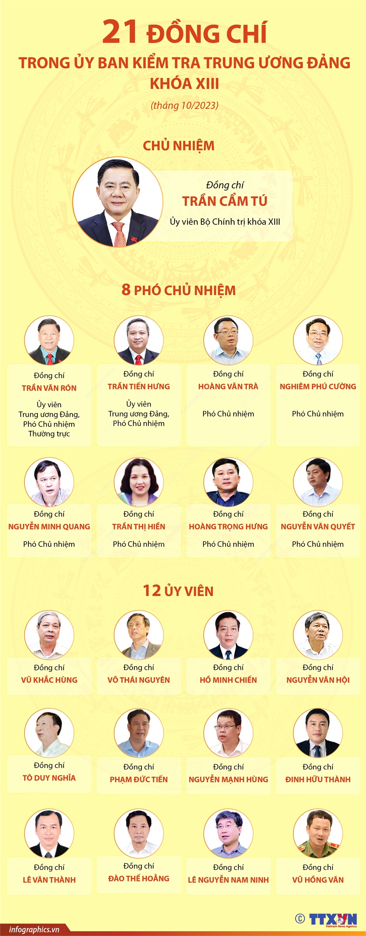 21 đồng chí trong Ủy ban Kiểm tra Trung ương Đảng khóa XIII (tháng 10/2023)