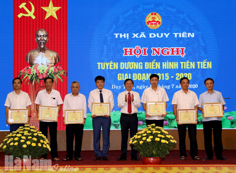 Đánh giá công tác thi đua – khen thưởng của thị xã giai đoạn 2015-2020 tại hội nghị nêu rõ: Nhiều phong trào thi đua của thị xã những năm qua đã đi vào chiều sâu, đạt chất lượng, hiệu quả và mang tính xã hội cao với các chỉ tiêu được nâng lên. Phong trào tập trung vào những lĩnh vực mũi nhọn, việc khó, việc mới, nhiệm vụ trọng tâm, đột xuất, những việc được quần chúng nhân dân quan tâm. Nhờ đó, tình hình kinh tế- xã hội của thị xã đạt nhiều thành tựu quan trọng. Duy Tiên là huyện đầu tiên của tỉnh về đích huyện nông thôn mới, sớm hơn so với mục tiêu Đại hội 2 năm. Năm 2019, Duy Tiên được Ủy ban Thường vụ Quốc hội khóa XIV thông qua Nghị quyết thành lập thị xã. .