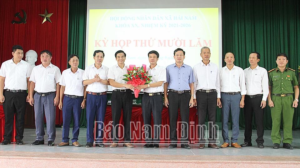 | Các đồng chí được bầu vào các chức danh lãnh đạo HĐND, UBND xã Hải Nam (Hải Hậu). |
