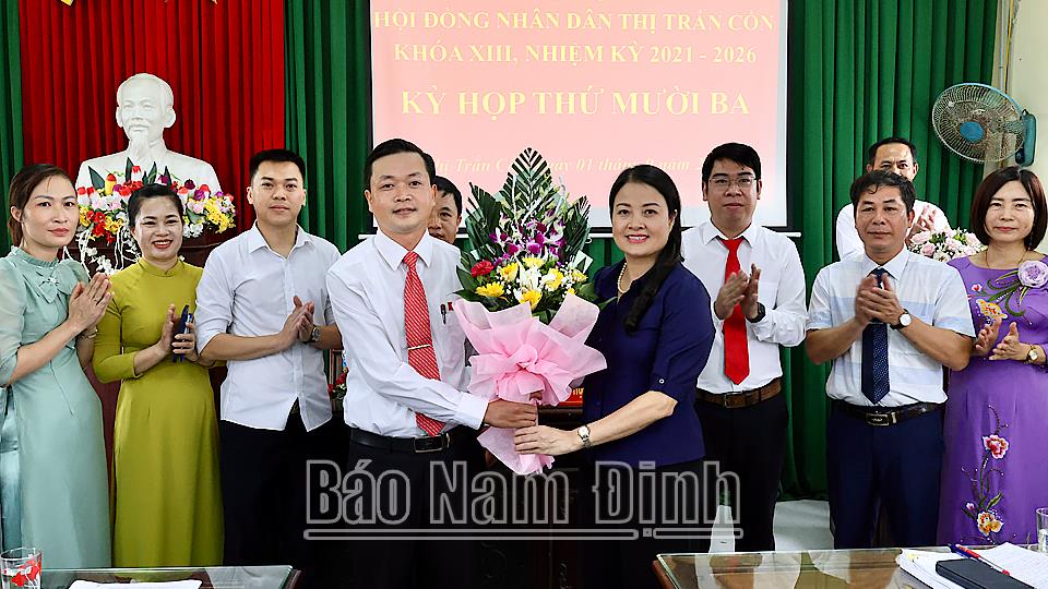 | Lãnh đạo huyện Hải Hậu tặng hoa chúc mừng Thường trực HĐND thị trấn Cồn (Hải Hậu) nhiệm kỳ 2021-2026. |