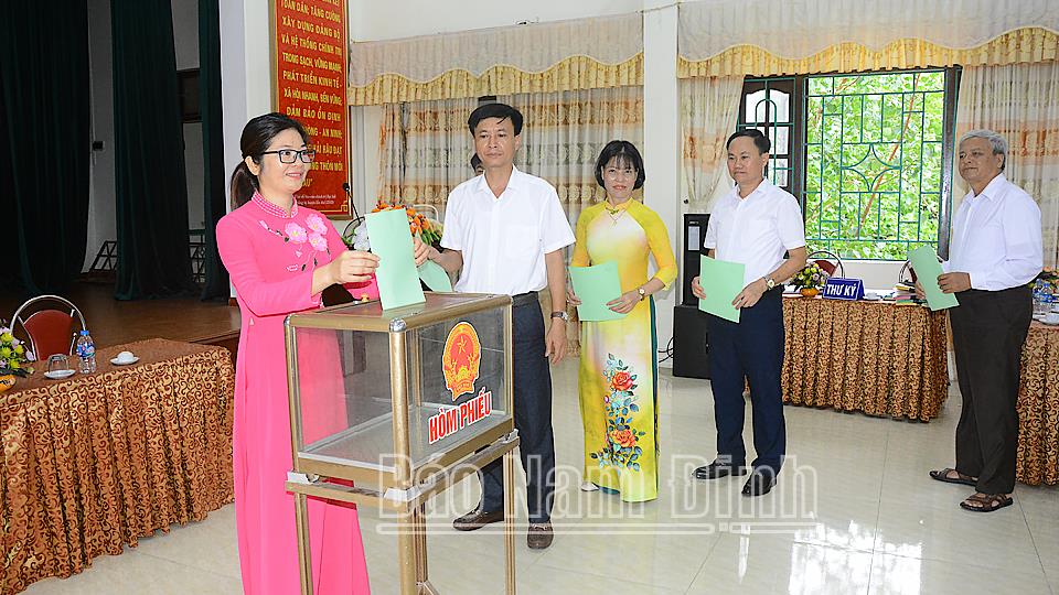 | Các đại biểu HĐND xã Trung Nghĩa (Ý Yên) bỏ phiếu bầu chức danh Chủ tịch HĐND xã, nhiệm kỳ 2021-2026. |