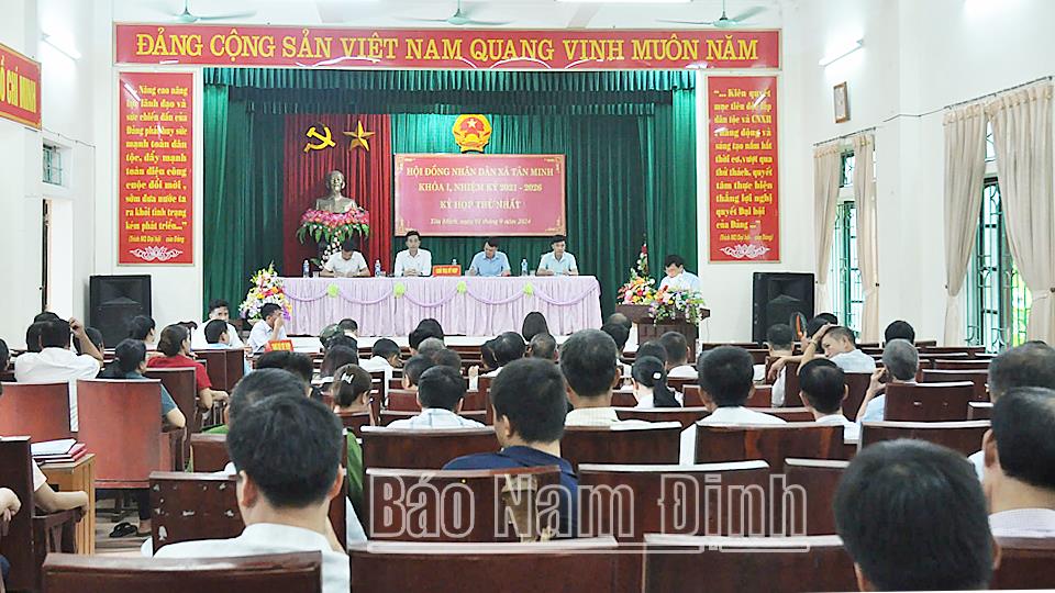 | Quang cảnh kỳ họp thứ nhất HĐND xã Tân Minh (Ý Yên) khóa I, nhiệm kỳ 2021-2026. |
