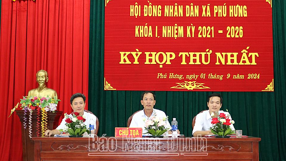 Tại kỳ họp, các đại biểu được nghe Thông báo của Ban Thường vụ Huyện ủy Ý Yên, Tờ trình của HĐND xã Phú Hưng về việc giới thiệu nhân sự, giới thiệu cán bộ ứng cử bầu giữ các chức danh Chủ tịch, Phó Chủ tịch HĐND xã và các chức danh Chủ tịch, Phó Chủ tịch UBND xã, nhiệm kỳ 2021-2026. Tiếp đó, các đại biểu HĐND xã đã đồng thuận bỏ phiếu bầu và biểu quyết thông qua các nghị quyết xác nhận kết quả bầu 1 đồng chí Chủ tịch HĐND xã, 2 đồng chí Phó Chủ tịch HĐND xã, 1 đồng chí Chủ tịch UBND xã, 3 đồng chí Phó Chủ tịch UBND xã.