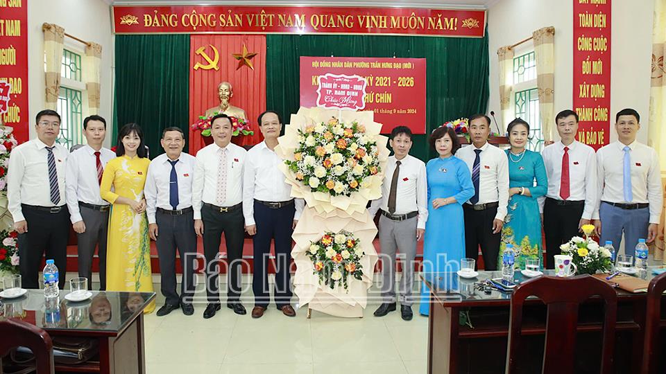 HĐND phường Trần Hưng Đạo (Thành phố Nam Định) khóa IX, nhiệm kỳ 2021-2026 tổ chức kỳ họp thứ chín để tiến hành bầu các chức danh của HĐND, UBND phường. Đại diện lãnh đạo thành phố Nam Định tham dự kỳ họp.