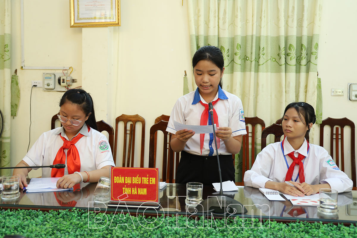 Các đại biểu trẻ em nêu ý kiến tại cuộc gặp mặt.