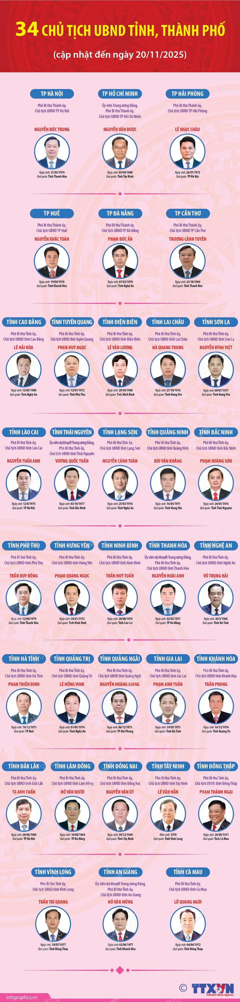34 Chủ tịch UBND tỉnh, thành phố nhiệm kỳ 2021-2026 (cập nhật đến 20/11/2025)