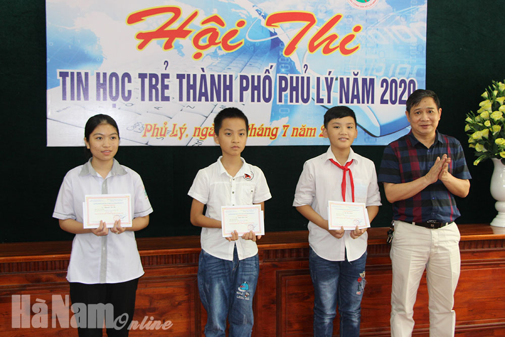 34 thí sinh và nhóm thí sinh đoạt giải tại Hội thi Tin học trẻ thành phố Phủ Lý năm 2020