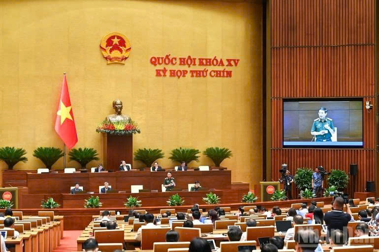 Tiếp tục chương trình Kỳ họp thứ 9, ngày 14/6, Quốc hội tiến hành thảo luận ở hội trường về dự án Luật sửa đổi, bổ sung một số điều của Luật Quốc phòng; Luật Sĩ quan Quân đội nhân dân; Luật Quân nhân chuyên nghiệp, công nhân và viên chức quốc phòng; Luật Nghĩa vụ quân sự; Luật Biên phòng Việt Nam; Luật Phòng không nhân dân; Luật Lực lượng dự bị động viên; Luật Phòng thủ dân sự; Luật Quản lý, bảo vệ công trình quốc phòng và khu quân sự; Luật Dân quân tự vệ; Luật Giáo dục quốc phòng và an ninh.