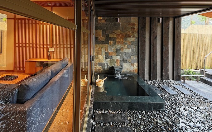 Khu nghỉ dưỡng có nhiều khu vực để du khách trải nghiệm như tắm khoáng, khu trị liệu, khu nghỉ theo mô hình nhà Nhật truyền thống, spa, ẩm thực... Du khách có thể mua vé tắm ở các khu tắm chung theo khung giờ 9 - 12h, 12 - 14h, 14 - 19h, 19 - 20h hoặc thuê phòng nghỉ riêng biệt theo gói 6 tiếng hoặc qua đêm. Giá phòng riêng từ 3,5 - 7,9 triệu đồng/ phòng, vé khu tắm chung từ 750.000 - 2 triệu đồng/ người, tùy vào khung giờ, ngày thường hay cuối tuần. Ảnh: Yoko Onsen