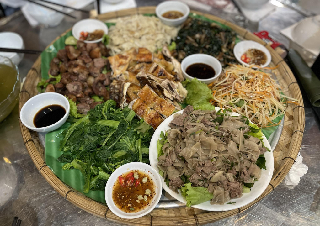 Mâm đồ ăn có giá khoảng 1 triệu đồng cho 7-8 người tại Mai Châu. Ảnh: Linh Hương