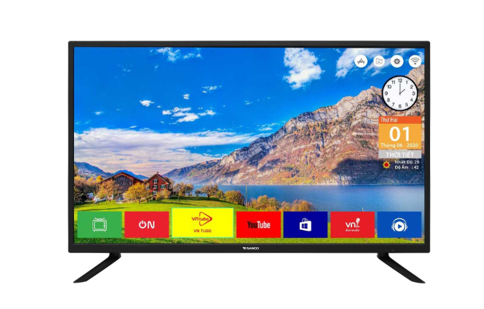 TV của thương hiệu Việt khác là Sanco cũng có kích thước màn hình 43 inch và độ phân giải Full HD tương tự của Asanzo. Tuy nhiên, sản phẩm có viền màn hình dày hơn hẳn là 1,6 cm.