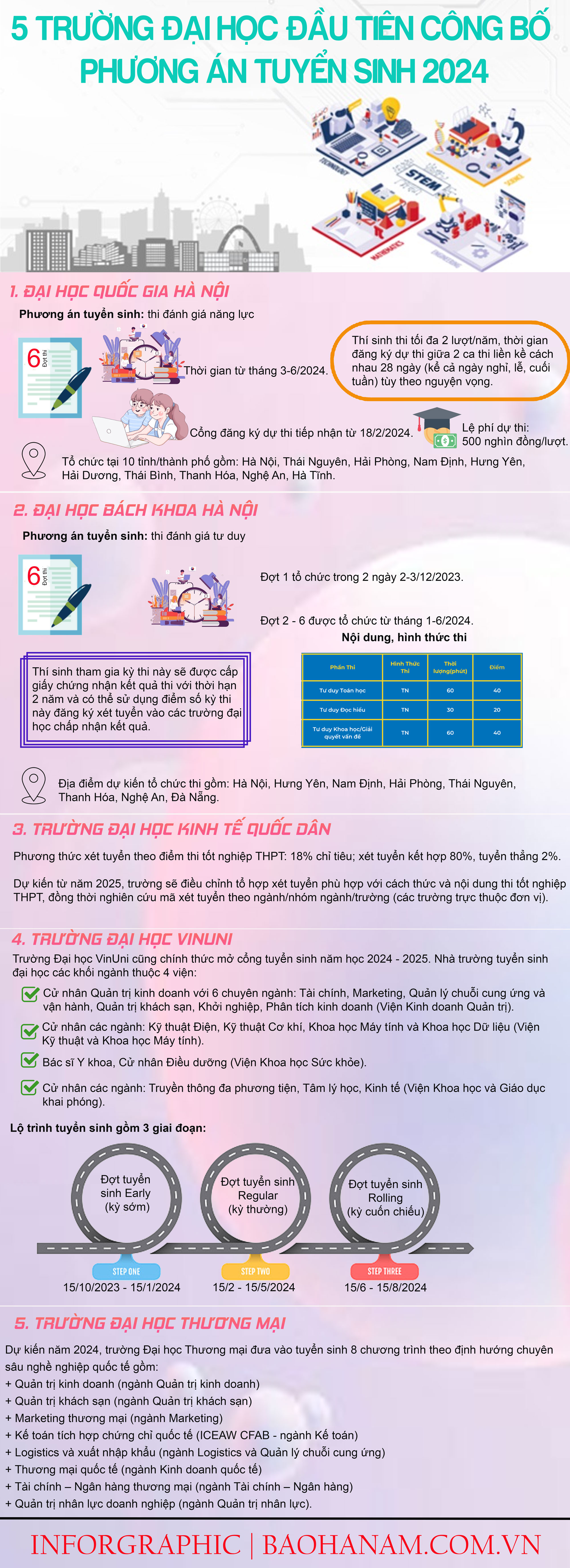 5 trường đại học đầu tiên công bố phương án tuyển sinh 2024