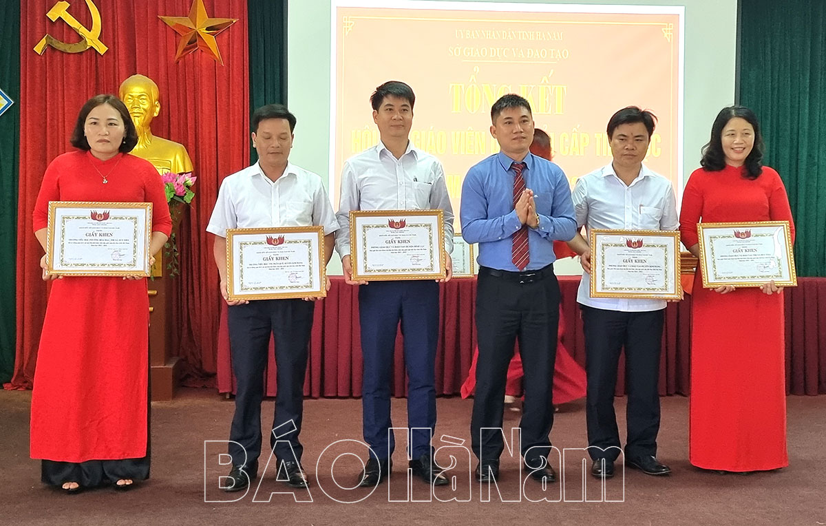 Lãnh đạo Sở GD&ĐT khen thưởng các tập thể có thành tích xuất sắc và có nhiều đóng góp tích cực cho hội thi.