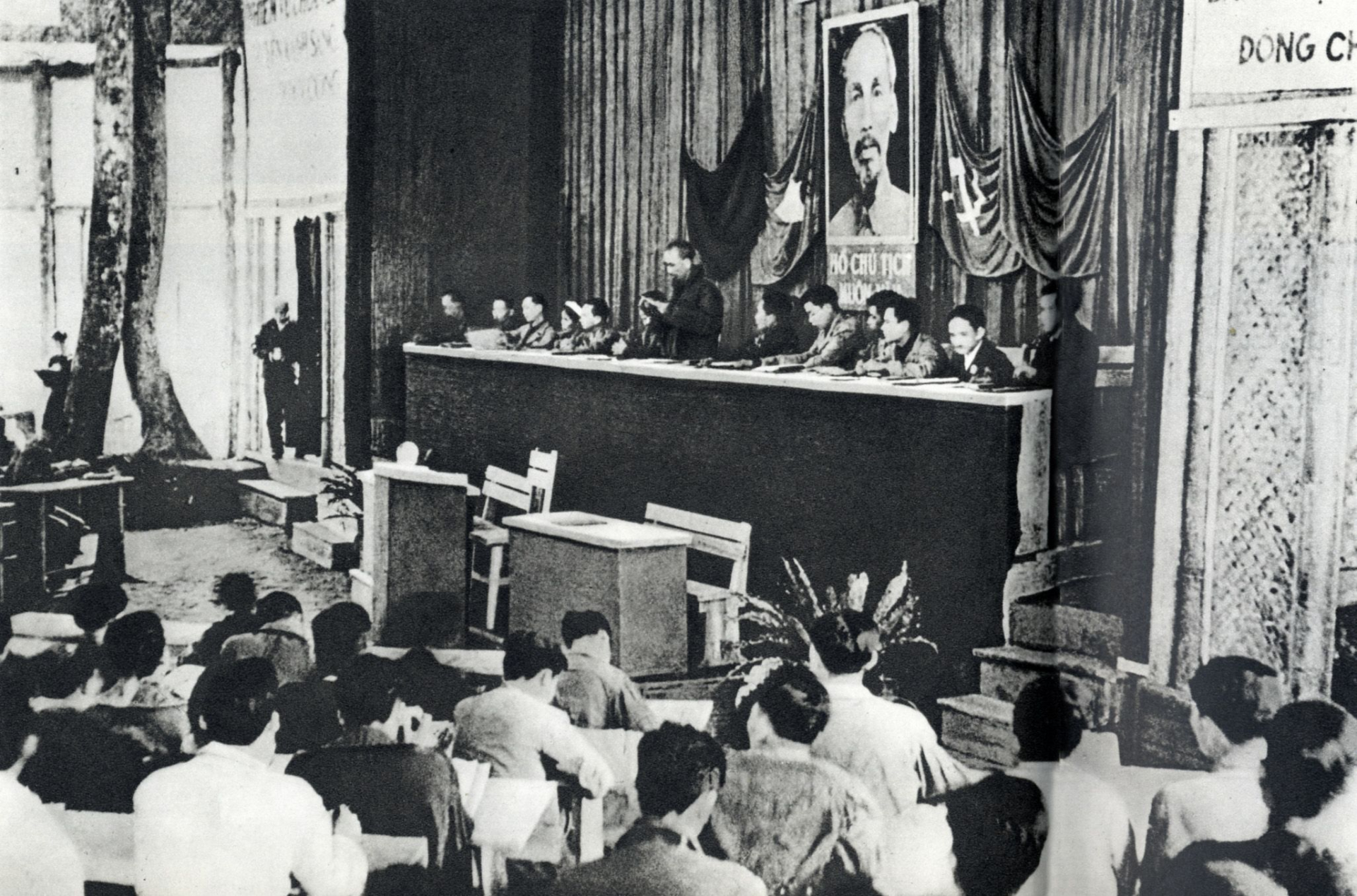 | Chủ tịch Hồ Chí Minh đọc Báo cáo chính trị tại Đại hội đại biểu toàn quốc lần thứ II Đảng Lao động Việt Nam họp ở Việt Bắc, tháng 2/1951. Ảnh tư liệu |