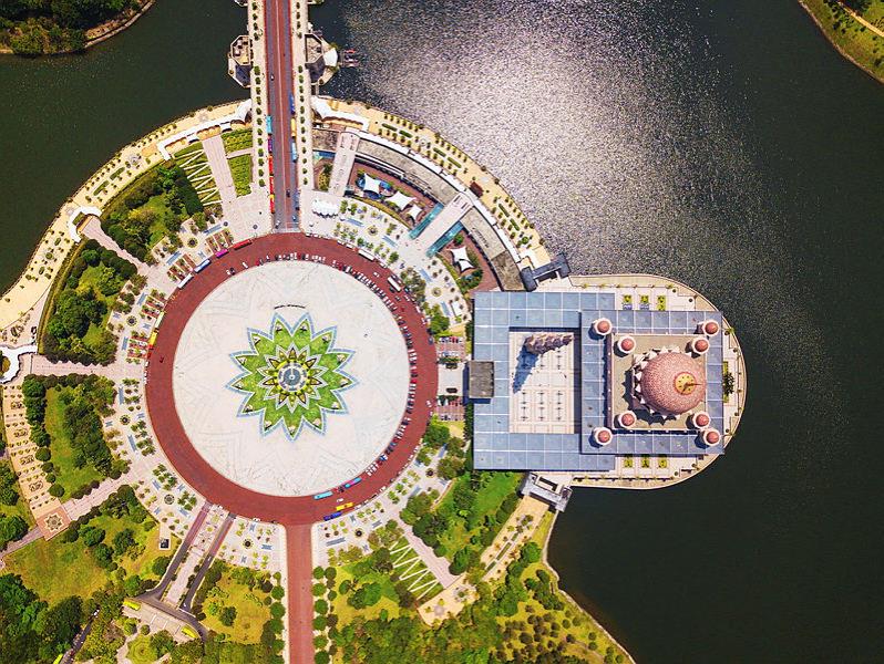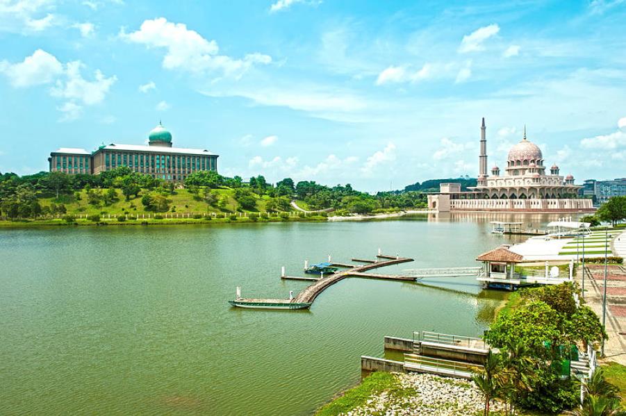 Nhà thờ Hồi giáo Putra với thiết kế cảnh quan sân vườn và hồ Putrajaya. Ảnh: Cục Xúc tiến Du lịch Malaysia