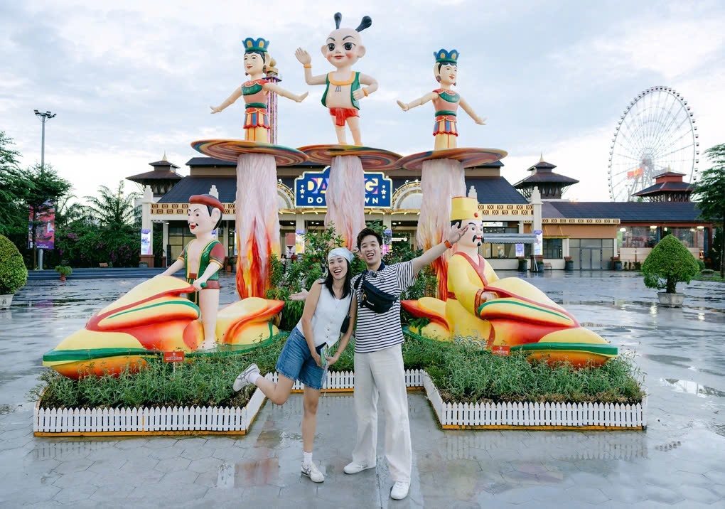 Không chỉ show Symphony of River, du khách đến Da Nang Downtown còn để tìm kiếm một góc check-in thuần Việt. Đó là tiểu cảnh Rối Việt tại cổng chào của tổ hợp vui chơi giải trí. Những nhân vật đặc trưng của nghệ thuật rối Việt như chú Tễu, nàng Tiên, người nông dân được thiết kế lại ngộ nghĩnh và độc đáo.