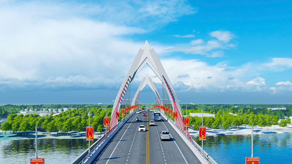 | Phối cảnh cây cầu thứ 4 bắc qua sông Đào nối từ đường Song Hào đến đường Vũ Hữu Lợi (thành phố Nam Định) đang được xây dựng. |