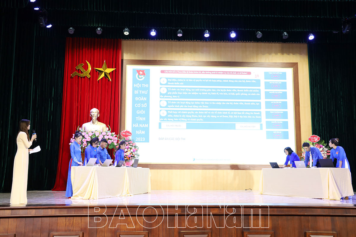 Ở phần thi kiến thức, các thí sinh đã thể hiện sự hiểu biết sâu sắc về Nghị quyết Đại hội Đảng lần thứ XIII, Nghị quyết Đại hội Đoàn toàn quốc lần thứ XII, Nghị quyết Đại hội Đảng bộ tỉnh lần thứ XX, Nghị quyết Đại hội Đoàn tỉnh lần thứ XV; về các chủ trương của Đảng, Nhà nước về thanh thiếu nhi; các vấn đề về lịch sử, truyền thống, kinh tế - văn hóa của đất nước, tỉnh Hà Nam; lịch sử của Đoàn, Hội; các kiến thức về chính trị, xã hội; các kỹ năng, nghiệp vụ công tác Đoàn, Hội và phong trào thanh, thiếu nhi; kiến thức về chuyển đổi số.