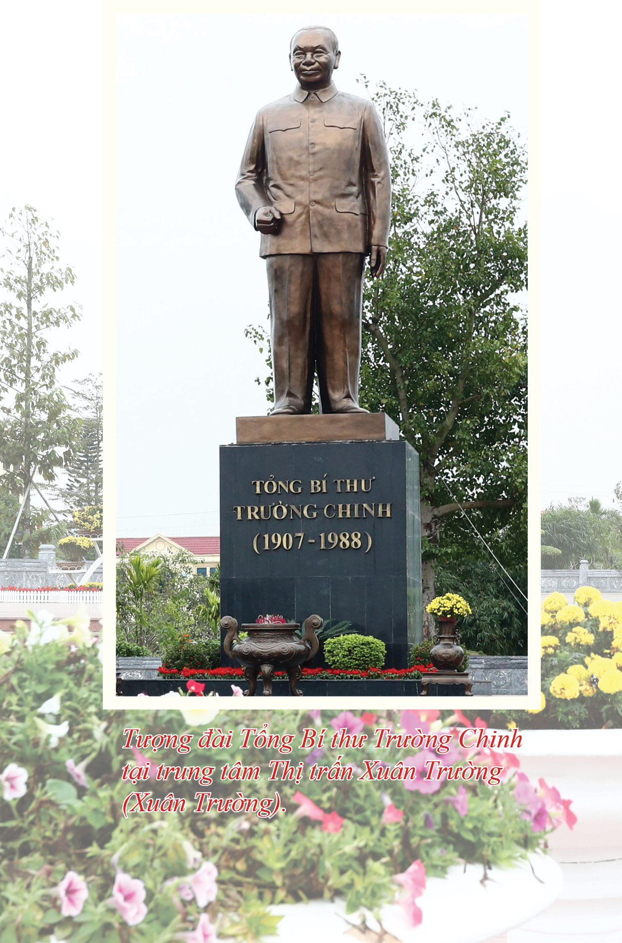 Đồng chí Trường Chinh tên thật là Đặng Xuân Khu, sinh ngày 9-2-1907 trong một gia đình trí thức yêu nước tại làng Hành Thiện, xã Xuân Hồng (Xuân Trường). Trên cương vị 3 lần là Tổng Bí thư, hơn 20 năm là Ủy viên Bộ Chính trị, được phân công giữ nhiều trọng trách lớn của Đảng, Nhà nước; dù ở bất cứ cương vị công tác nào, đồng chí cũng luôn hết lòng vì Đảng, vì nước, vì dân; vững vàng trước mọi khó khăn, thử thách. Phẩm chất đạo đức cách mạng, trí tuệ và tài năng của đồng chí tỏa sáng trong mọi hoàn cảnh; nhất là ở các bước ngoặt quan trọng của lịch sử cách mạng Việt Nam. Dưới ngọn cờ lãnh đạo của Đảng, đứng đầu là Chủ tịch Hồ Chí Minh vĩ đại, trên cương vị Tổng Bí thư của Đảng, từ năm 1941, cùng với BCH Trung ương và Bộ Chính trị, đồng chí Trường Chinh đã có nhiều quyết sách đúng đắn, sáng tạo trong các giai đoạn quan trọng của cách mạng.