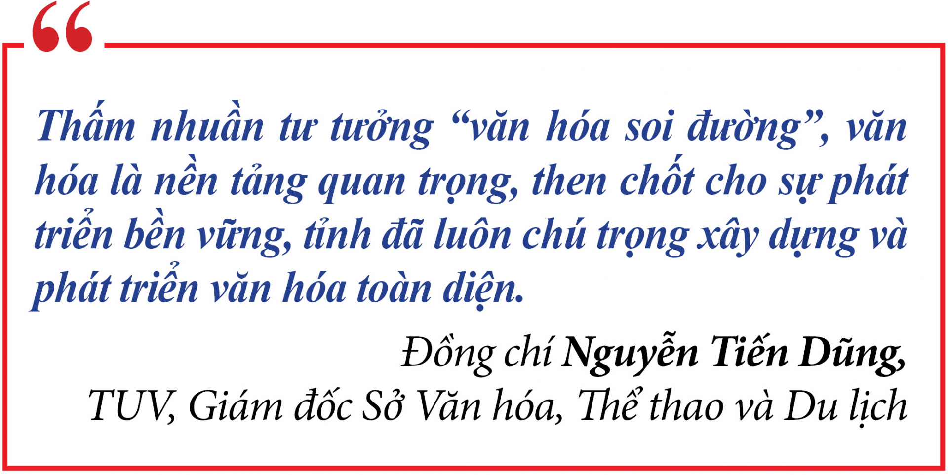 "Văn hóa là hồn cốt của dân tộc, nói lên bản sắc của dân tộc. Văn hóa còn thì dân tộc còn..."