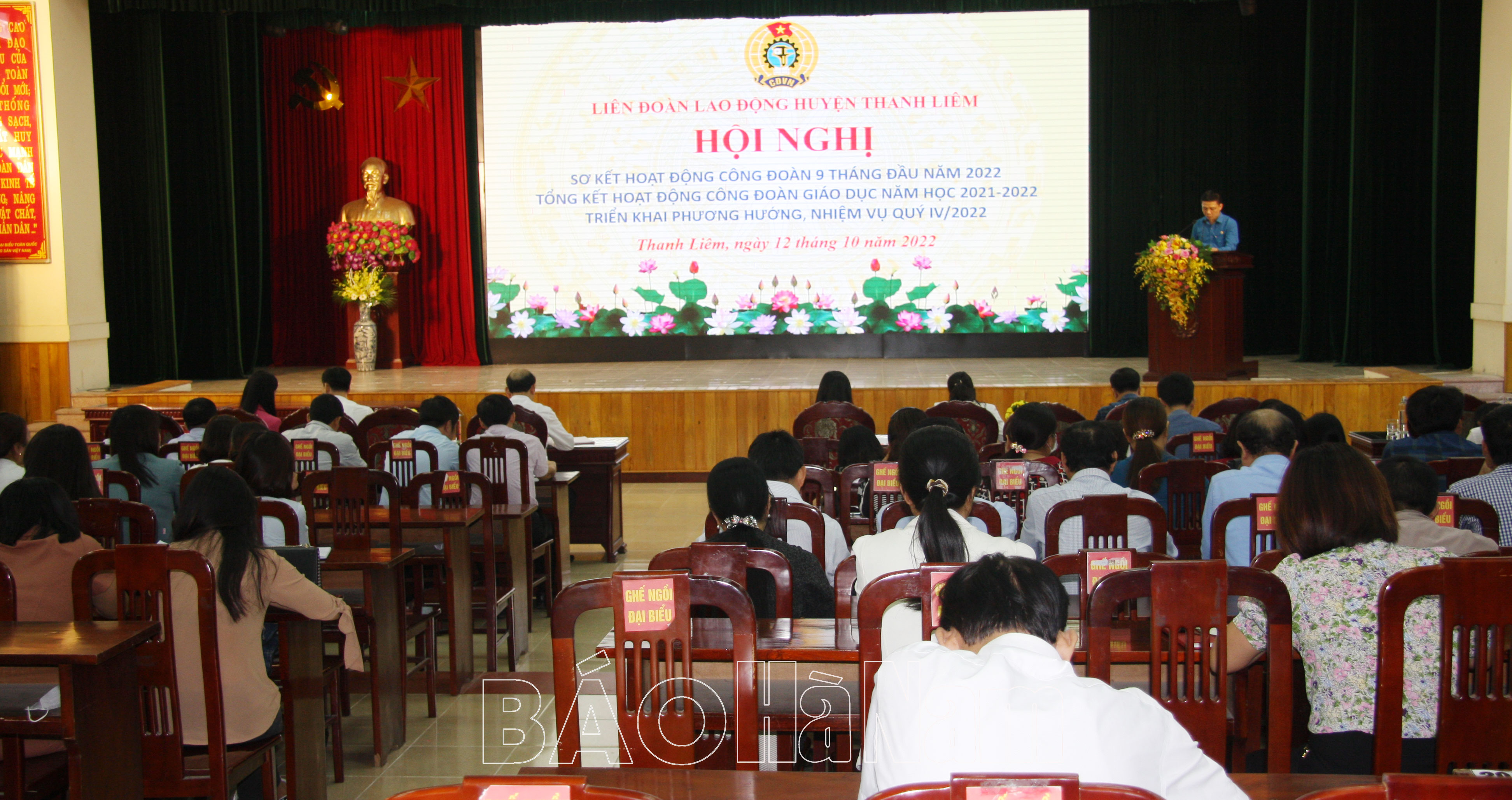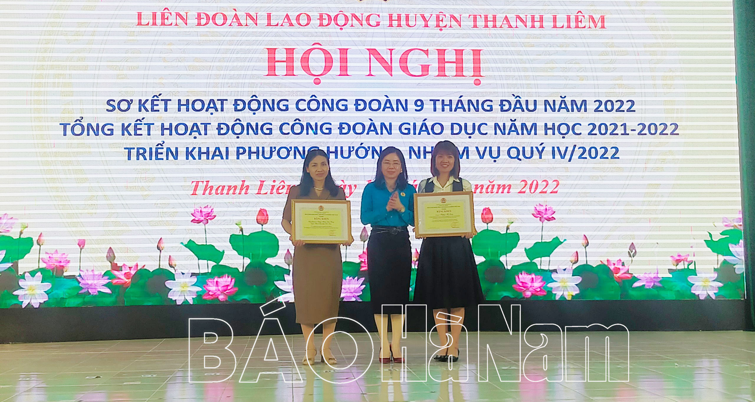 Tại hội nghị, LĐLĐ huyện Thanh Liêm đã tổ chức tổng kết hoạt động công đoàn giáo dục năm học 2021- 2022; trao kỷ niệm trương, bằng khen, giấy khen cho các tập thể, cá nhân có thành tích hoạt động công đoàn giáo dục năm 2021 - 2022.