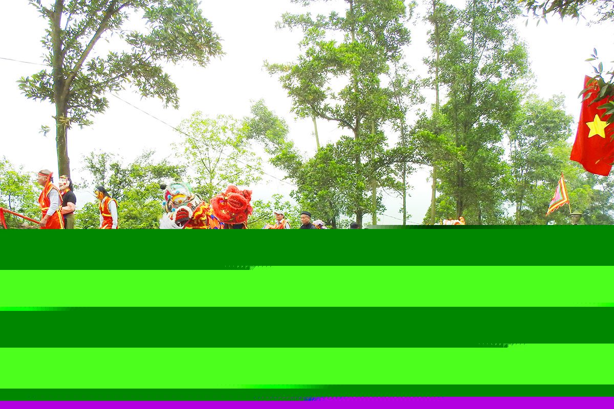 Vòng ba tầng núi, nơi xới vật, kéo co, chỗ bầy trò múa rối. Trăm hồng nghìn tía đua chen. Thổi cơm chay trắng muốt, thết khách đói qua đường, phát tiền quý ùn ùn, cấp dân nghèo khắp chốn… (văn bia).