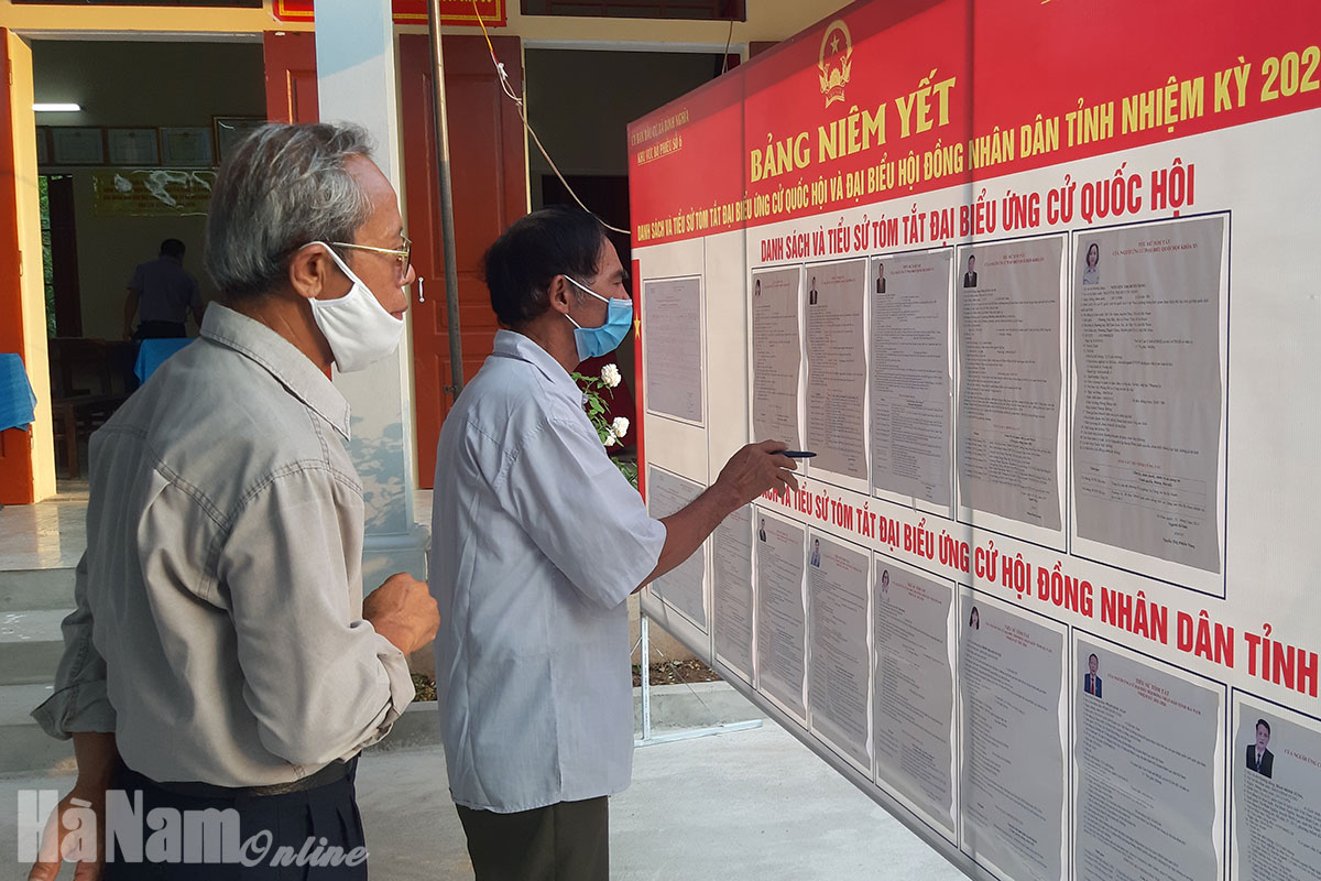 * 13 giờ: Theo thông tin từ Ủy ban bầu cử (UBBC) tỉnh, tính đến 12 giờ 30 phút ngày 23/5 đã có 561.363 trên tổng số 650.293 cử tri toàn tỉnh tham gia bỏ phiếu tại 777 tổ bầu cử, đạt tỷ lệ 86,32%. Trong đó thành phố Phủ Lý đạt trên 88%, thị xã Duy Tiên đạt gần 84%; huyện Bình Lục đạt trên 86%; huyện Thanh Liêm đạt trên 86%, huyện Lý Nhân (địa phương đang có các xã cách ly y tế) đạt trên 85 % và huyện Kim Bảng đạt tỷ lệ trên 88%.