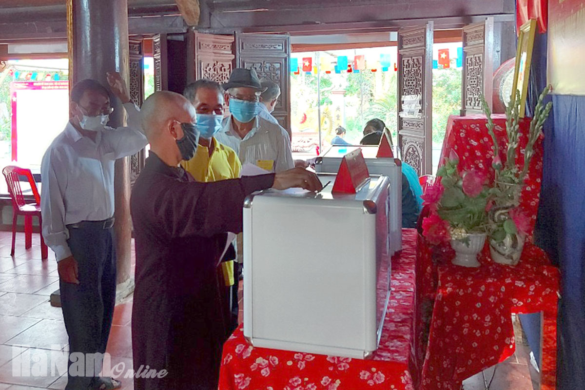 Theo thống kê của UBBC Thị xã Duy Tiên, toàn thị xã có 120 KVBP (trong đó có 17 khu vực bỏ phiếu tại nhà dân, trường học và cơ sở tín ngưỡng, tôn giáo) với 97.708 cử tri tham gia bỏ phiếu thực hiện quyền chính trị quan trọng của mình. Ở các KVBP, nghi thức khai mạc và các nội dung công tác tổ chức bầu cử được thực hiện trang trọng, đúng luật, an toàn gắn với thực hiện nghiêm các quy định phòng chống dịch bệnh covid-19. Tất cả cử tri đến bỏ phiếu đều được thành viên tổ bầu cử hướng dẫn thực hiện nghiêm thông điệp “5K” của Bộ Y tế, đo thân nhiệt, sát khuẩn tay, đeo khẩu trang, giữ khoảng cách phù hợp. Mỗi điểm bỏ phiếu đều bố trí phòng cách ly, kịp thời cách ly trường hợp nghi nhiễm Covid-19.