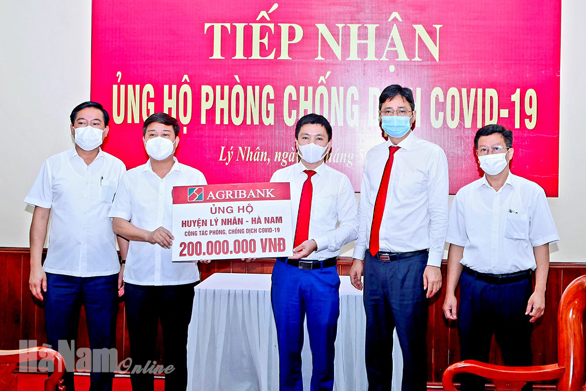 Agribank Chi nhánh tỉnh Hà Nam ủng hộ công tác phòng chống dịch Covid-19 cho thị xã Duy Tiên.Agribank Chi nhánh tỉnh Hà Nam ủng hộ công tác phòng chống dịch Covid-19 cho huyện Lý Nhân.