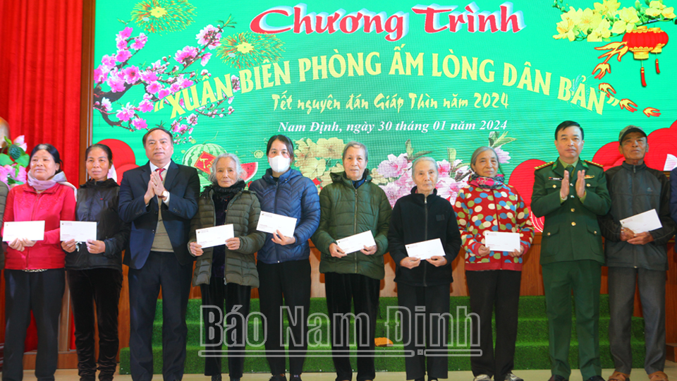 Hưởng ứng Chương trình “Xuân Biên phòng - Ấm lòng dân bản” nhân dịp Xuân Giáp Thìn 2024, trong 2 ngày 29 và 30-1, Ngân hàng Nông nghiệp và Phát triển nông thôn Việt Nam (Agribank) Chi nhánh tỉnh Nam Định đã phối hợp với Bộ Chỉ huy Bộ đội Biên phòng (BĐBP) tỉnh, Hội Nông dân tỉnh tổ chức trao 18 suất quà cho học sinh thuộc chương trình “Nâng bước em đến trường”, “Con nuôi Đồn Biên phòng” và 170 suất quà cho các gia đình chính sách gặp hoàn cảnh khó khăn ở 9 xã ven biển của các huyện Nghĩa Hưng, Giao Thủy, mỗi suất quà trị giá 500 nghìn đồng.