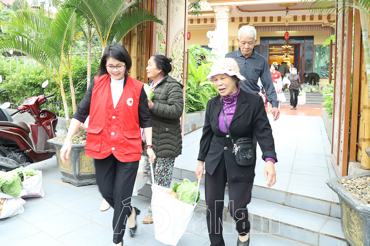 Nhân dịp này, Hội Chữ thập đỏ tỉnh đã tặng Bằng ghi nhận Tấm lòng vàng nhân đạo cho Đại đức Thích Minh Giác, trụ trì chùa Hòa Lạc vì có đóng góp tích cực trong thực hiện phong trào Tết nhân ái 2024.