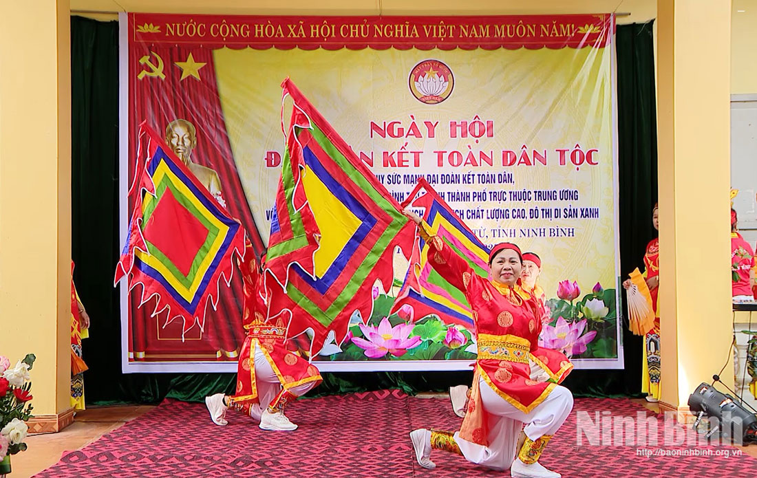 Một tiết mục văn nghệ tự biên, tự diễn của bà con nhân dân thôn Yên Sư, xã Yên Từ trong Ngày hội Đại đoàn kết toàn dân tộc ở khu dân cư.