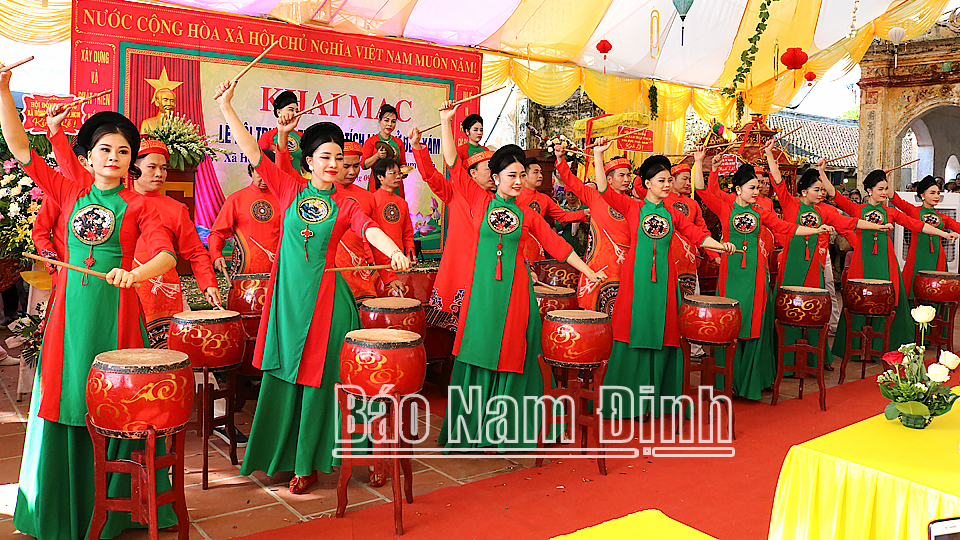 | Màn biểu diễn trống hội của Nhà hát Nghệ thuật truyền thống tỉnh tại buổi khai mạc lễ hội Đền Xám, xã Hồng Quang (Nam Trực). |
