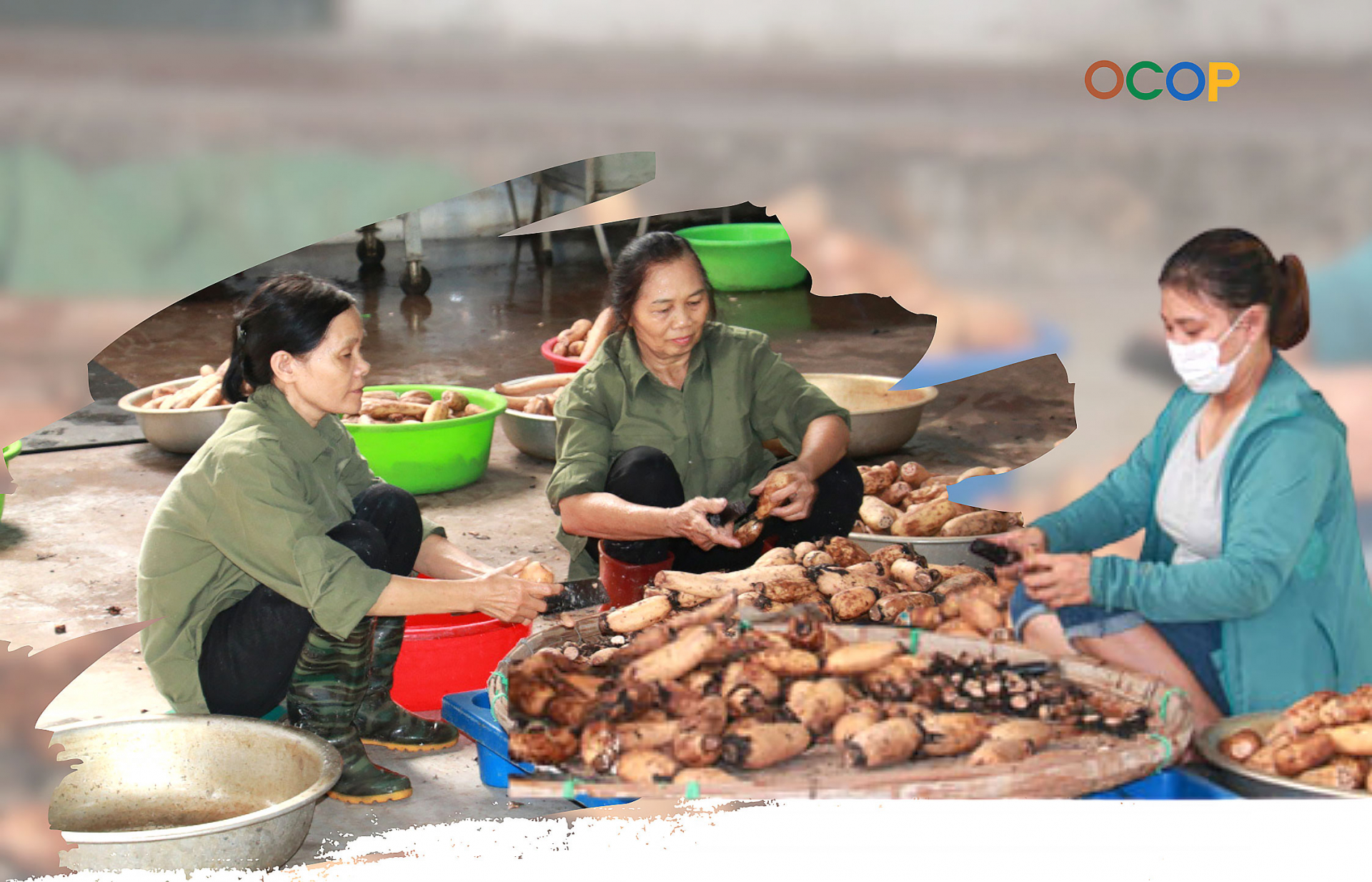 | Công nhân Công ty cổ phần nông nghiệp VIAGRI xã Trực Chính (Trực Ninh) sơ chế nguyên liệu làm trà củ sen và tinh bột củ sen. |