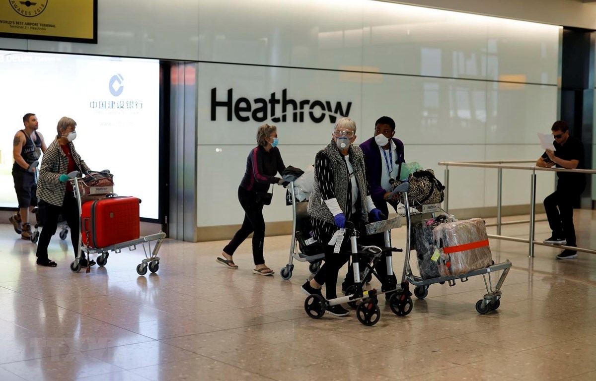 Hành khách tại sân bay quốc tế Heathrow ở London, Anh ngày 22/5/2020. (Ảnh: AFP/TTXVN)