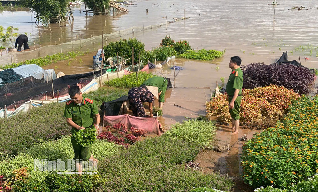 Lực lượng Công an phường Vị Khê hỗ trợ sơ tán nhân dân ra khỏi vùng ngập lụt đến nơi an toàn.Lực lượng Công an xã Ý Yên hỗ trợ người dân thu dọn, di chuyển tài sản trong vùng ngập lụt.Công an phường Vị Khê phối hợp cùng nhân dân thu gom, di chuyển cây cảnh, hoa màu ra khỏi khu vựcngập nước.