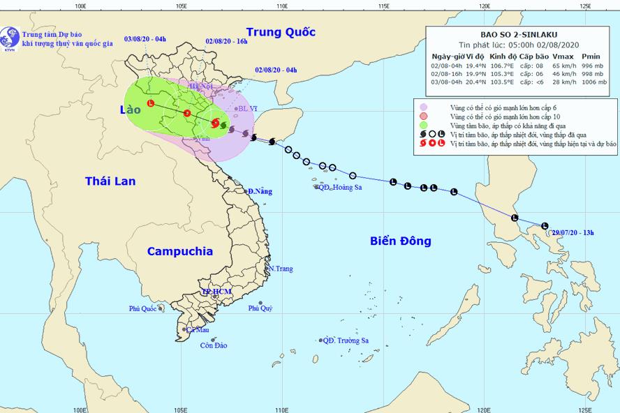 Vị trí và đường đi của bão số 2 Sinlaku. Ảnh: nchmf.gov.vn.