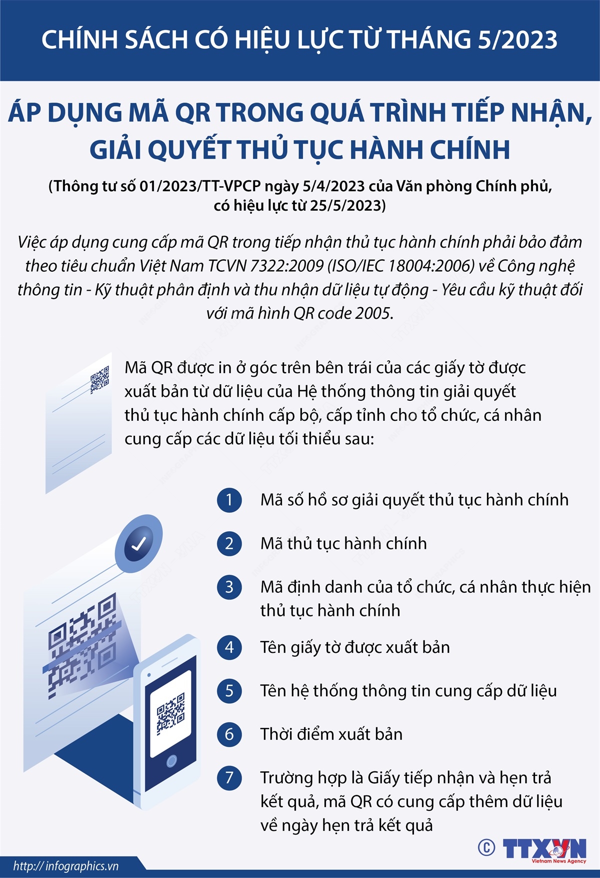 Áp dụng mã QR trong quá trình tiếp nhận, giải quyết thủ tục hành chính từ 25/5/2023