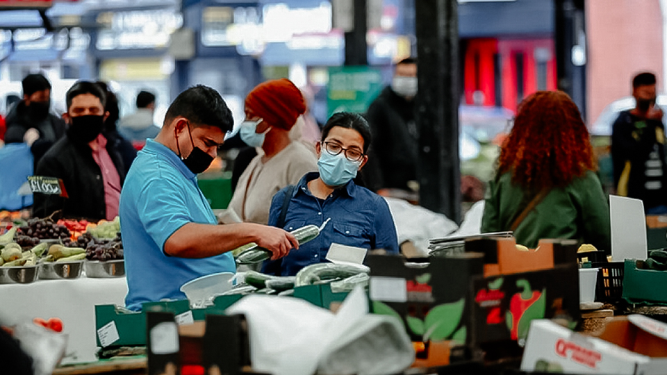 | Người dân Anh mua sắm tại chợ Leicester, thành phố Leicester, Anh, ngày 27-5-2021.